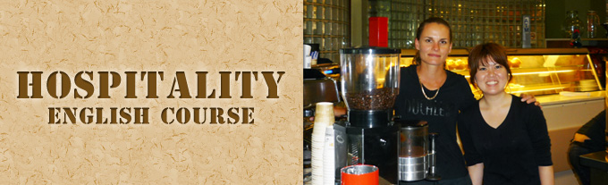 - When I was at the local café, I was quite nervous at first time, but the staff at the café and the customers were so kind that I got hang of it so easily with the use of the phrases and the vocabulary I had learnt in Hospitality English; it was so useful that I was able to serve customers in very natural way. Without the role-plays, I could not have done it so smoothly. Moreover, in practically working at the café, I learned new ways of sayings on top of what I have learned. Those sayings are so real and I can tell that it was something that we have to experience to learn it but not with the textbook. Everyone at the café was really nice and I felt I did not want to leave there and miss them for sure.
